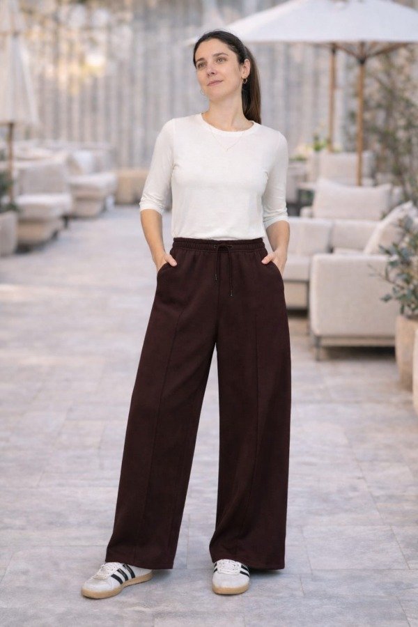 Corte amplio y fluido con caída perfecta. Cintura elástica con cordón y bolsillos laterales.