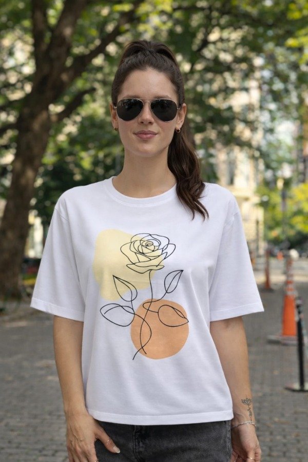 Remera Flor Abstracta Blanca